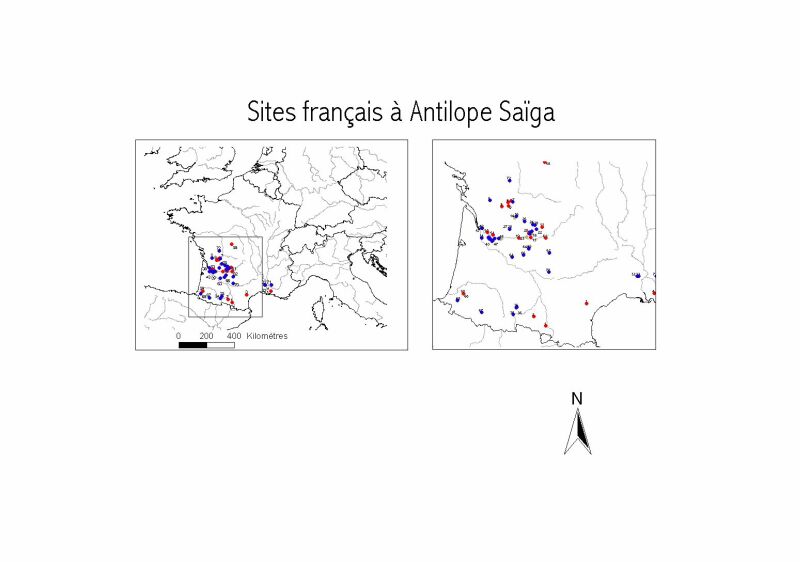 Carte des Sites ayant livré des Saïgas en France
